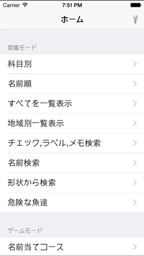 ゲームモードでは、魚の写真から名前を当てるコースと、魚の名前から写真を当てるコースがあります。