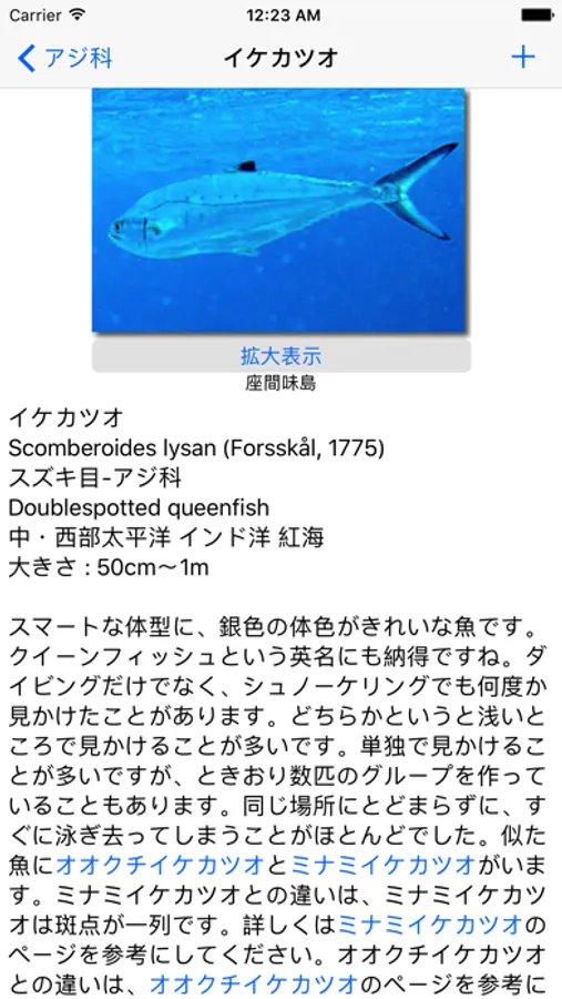 ダイビングとシュノーケリングで撮影した約2800枚の水中写真を元に作成した魚図鑑です。1747種が登録されています。ダイビングのログ付けのための魚図鑑代わりとしても使えると思います。