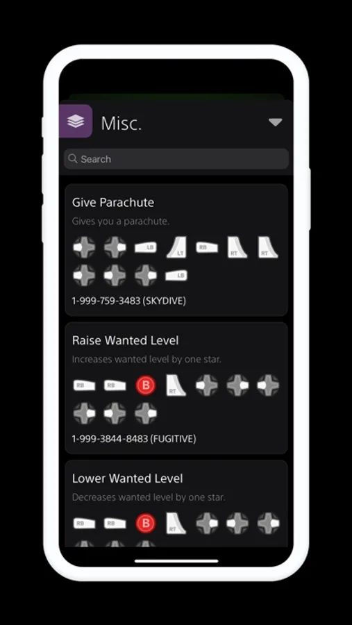 Discover the ultimate application for all GTA fans! With this application, you will have access to a complete and detailed list of all cheat codes for GTA, directly from your iPhone.