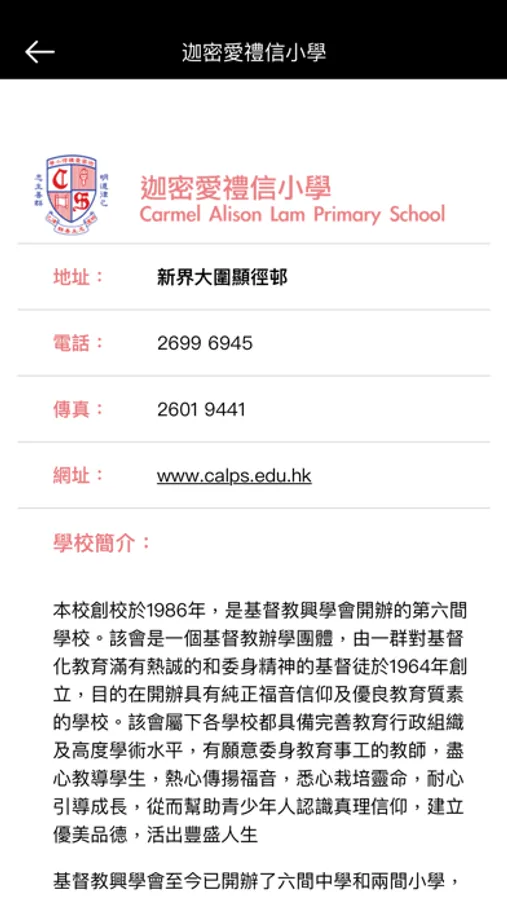 這是迦密愛禮信小學手機程式, 提供學校資訊和最新消息. 備有即時訊息推送功能, 將最新消息傳送到用戸手機. 程式提供以下學校資訊: