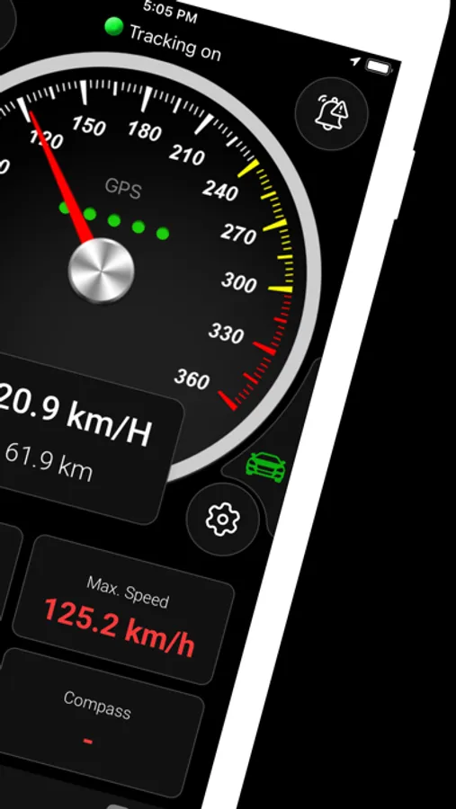 Displays current speed on a digital/analogue speedometer and keeps track of your top speed and average speed. Speedometer also allows you to easily switch between units of measurement (mph or km/h) for use in your vehicle (your cycle, your car, on a boat, or on an airplane) and track your journey with live tracking on a map!