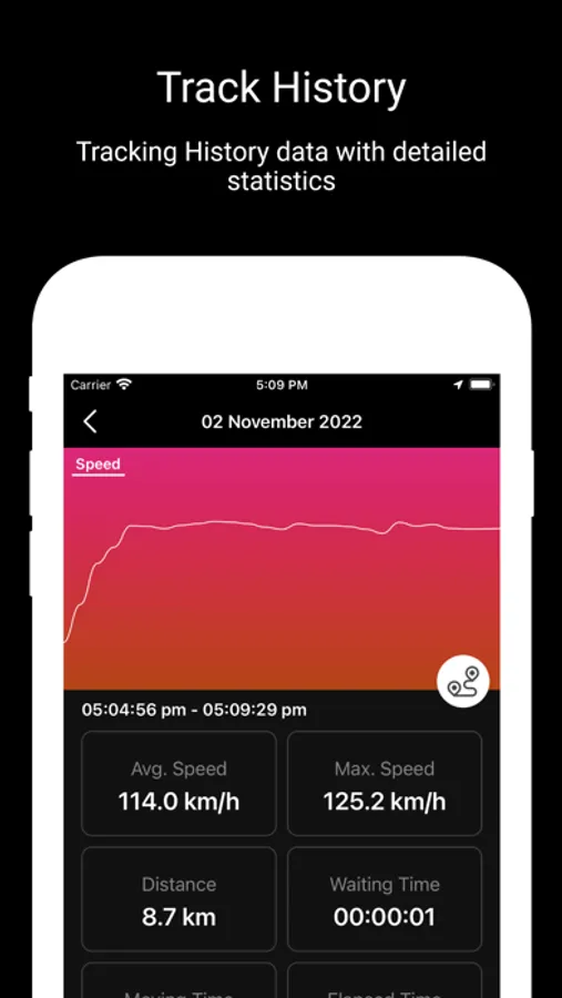 - Option to set speed limit and get notification alarm when you cross the predefined speed limit.