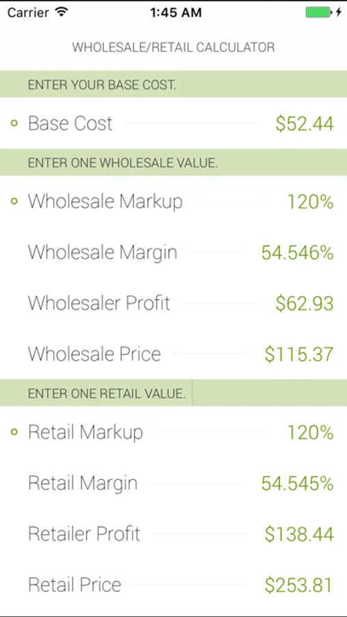 Quickly figure out your wholesale and retail price using Wholesale/Retail Calculator. Maximize your profits by adjusting markup or margin.