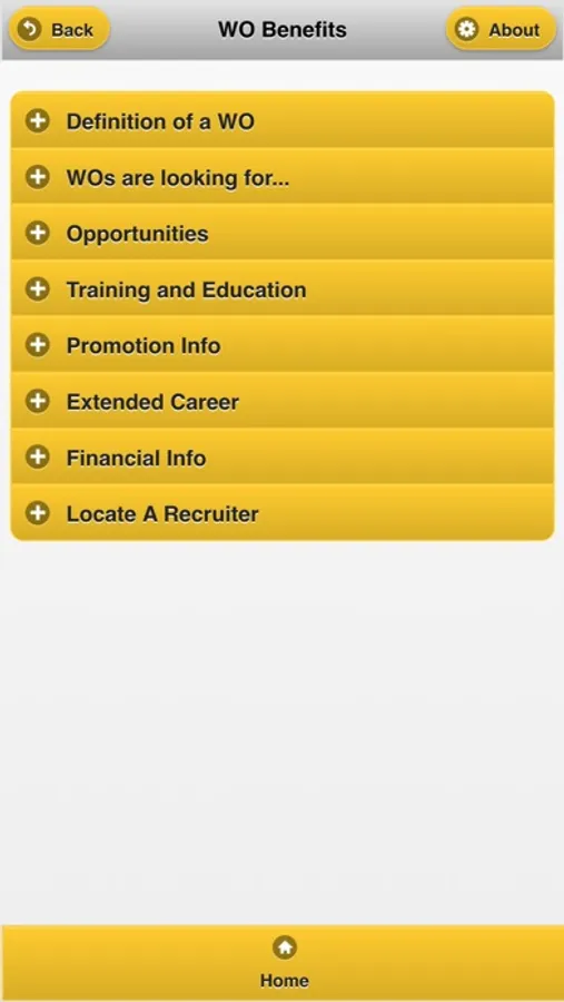 This application is for Active and Reserve Component Soldiers interested in becoming a Warrant Officer. It's designed to familiarize them with DA requirements and Branch MOS prerequisites. The application was created by TCM Mobile Team in cooperation with the Office of the Quartermaster General, US Army Quartermaster School, Fort Lee, Va.