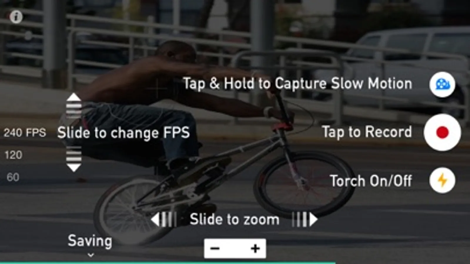 * Framerate of each device (30, 60, 120fps) is limited only by hardware and iOS, SlowCam always uses max available framerate for device