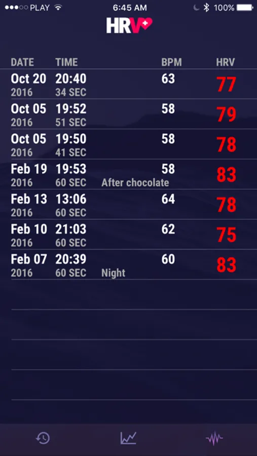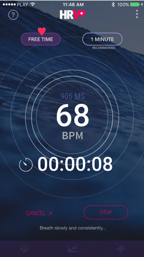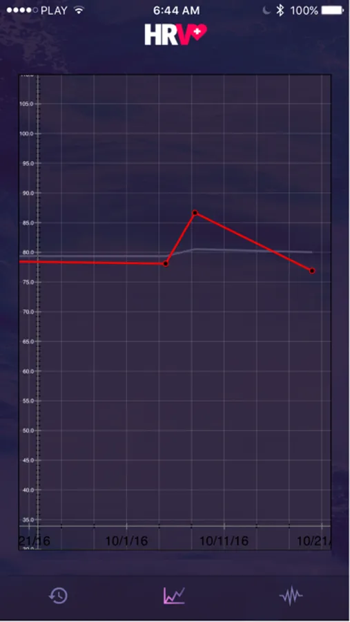 Heart Rate Variability (HRV) is a great indicator of what is going on inside your body. It's a measurement of how well the mind can slow heart rate (HR), which is an indicator of overall health and stress. In general, better health is indicated using HRV when there is more variability from an in-breath (HR speeding up) to an out-breath (HR slowing down). A simple one-minute measurement each day can be enough to predict when it is time to take it easy, to avoid sickness or injury.