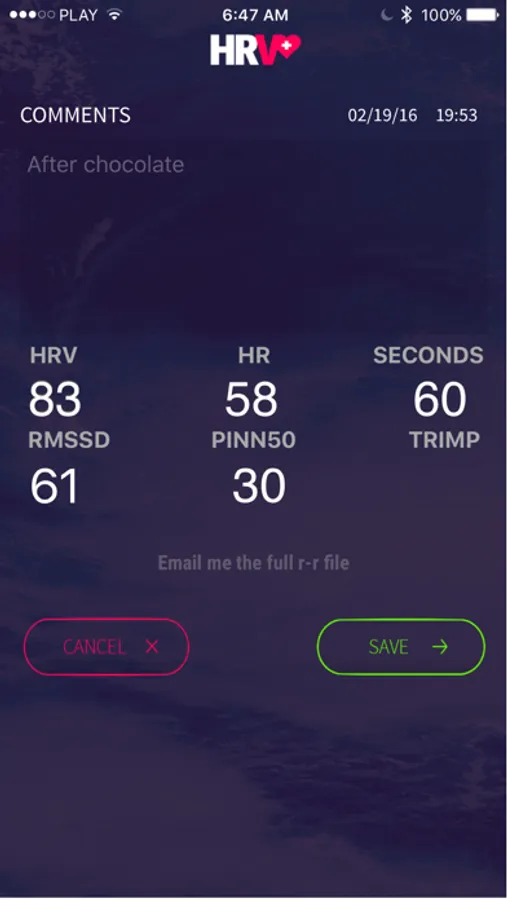 This application has some nice features like export RAW RR files for Kubios testing as well as unlimited time testing if you would like to perform other types of HRV tests. Additionally, you can export all data including RR files to DropBox.