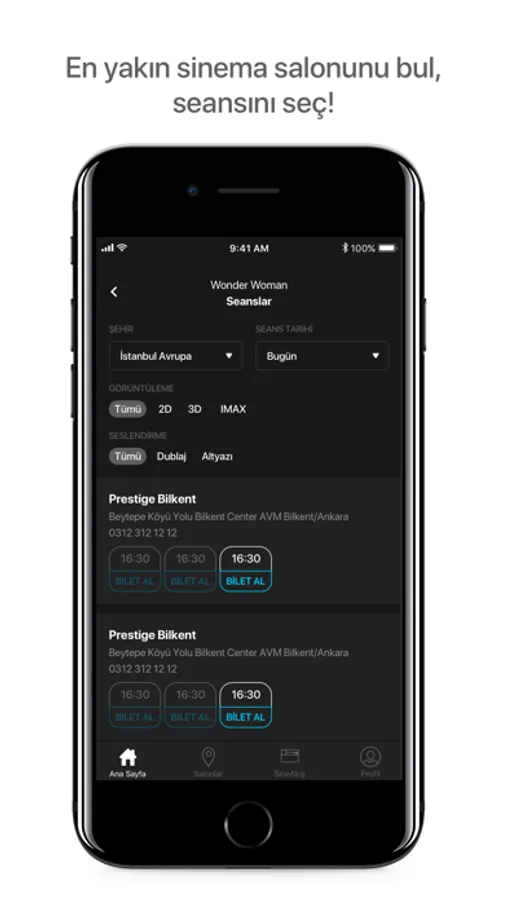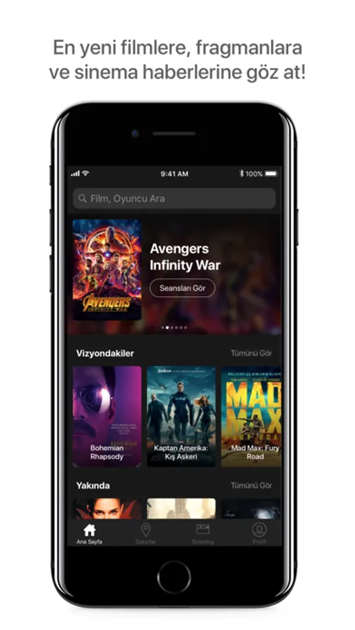 • Vizyondaki filmler ile yakında vizyona girecek filmleri öğrenebilir, film fragmanlarını izleyebilir ve cihazınızın konum bilgisi ile size en yakın sinema salonları ve film seansları hakkında anında bilgi alabilirsiniz.
