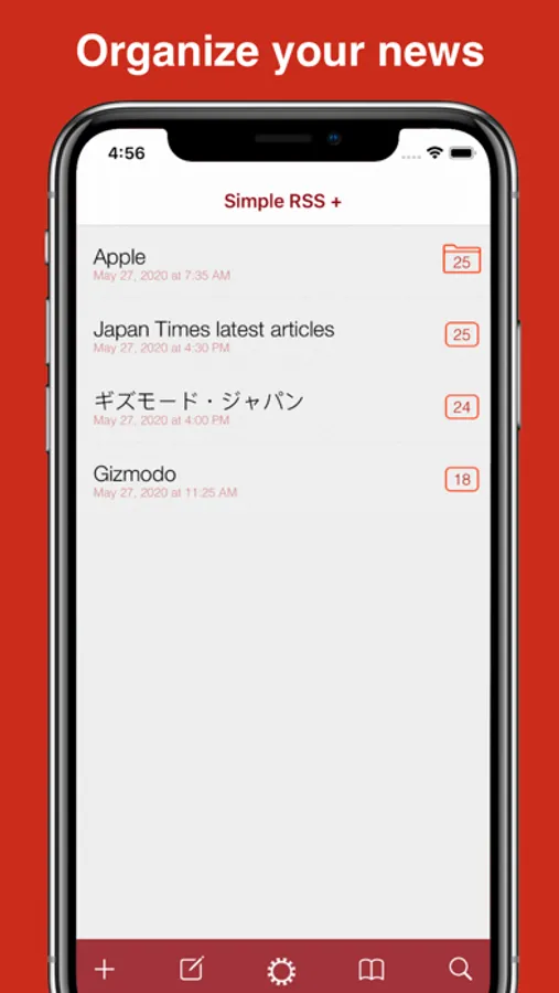Naturally, you'll need folders to organize your feeds, and Simple RSS+ can do that easily too! You can also move feeds between folders, and rename or remove them any time you wish. And each time you get new feeds into your folders or receive new articles, the folder icon will show you how many articles there still unread. You can also store your favorite articles and create bookmark folders to help keep them all organized. And of course, you can move the articles between the bookmark folders too.