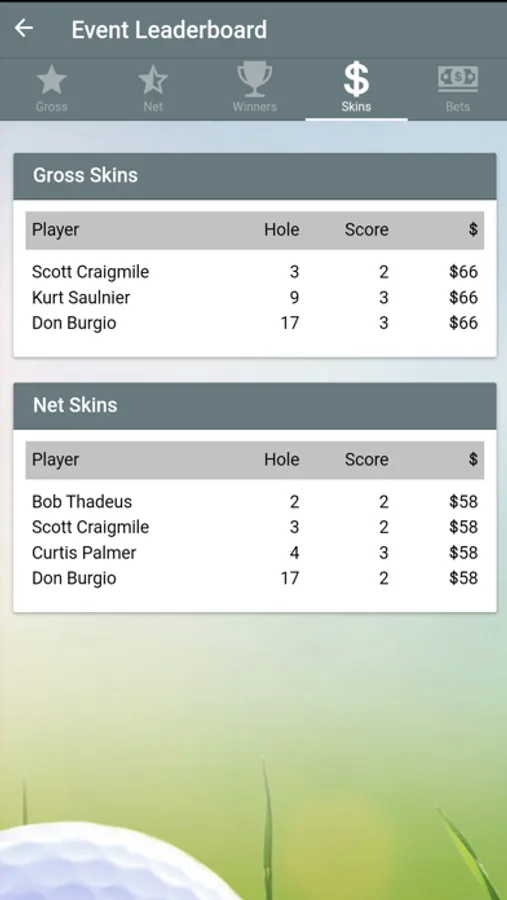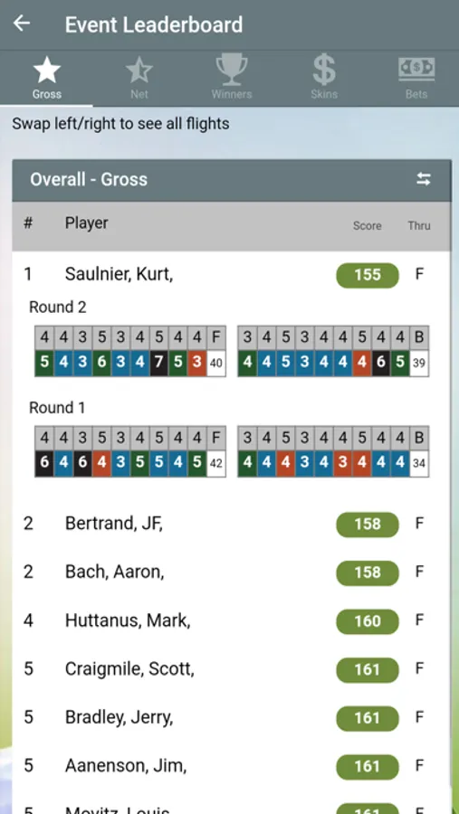 Live On-Course Hole-by-Hole Leaderboard (gross & net)