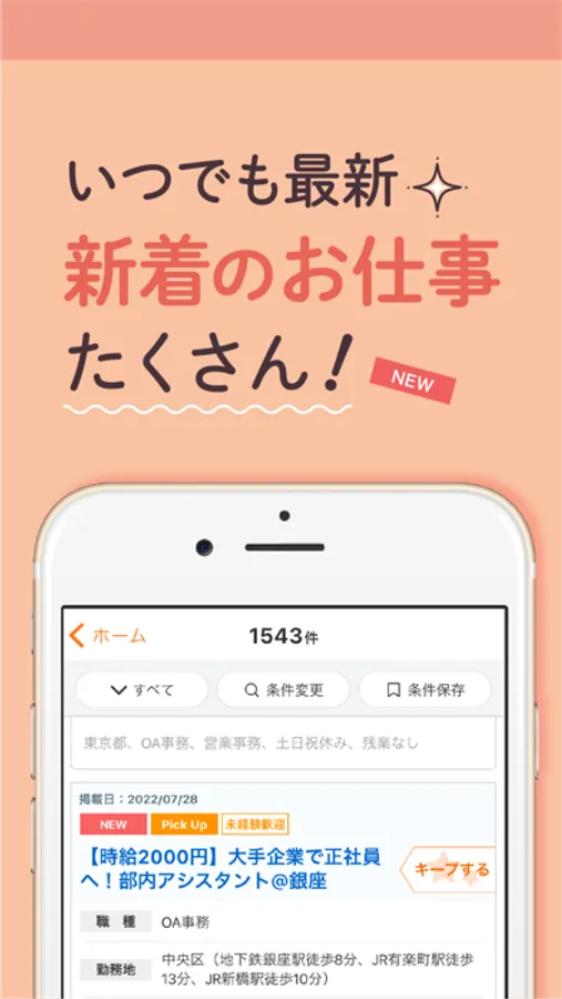 検索条件は5つまで保存できます。派遣のお仕事をお探しの方は、希望条件を保存することで、タップ1回ですぐに検索ができます!パートやアルバイトから派遣社員に挑戦したいあなたも、毎回検索条件を入力することなくリクルートのアプリ『リクナビ派遣』でラクラク派遣のお仕事探し!