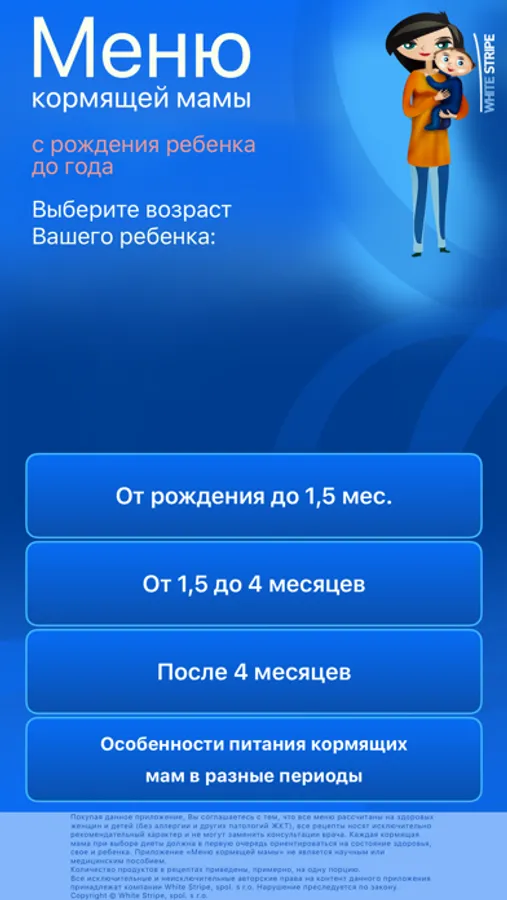 Приложение создано специально для того, чтобы помочь кормящей маме составить свой рацион с учетом питательных потребностей в период вскармливания, а также возрастных особенностей грудничка.