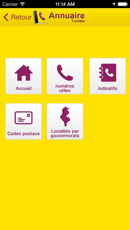 • Accéder aux indicatifs internationaux, codes postaux, localités par gouvernorats ainsi qu´aux numéros utiles