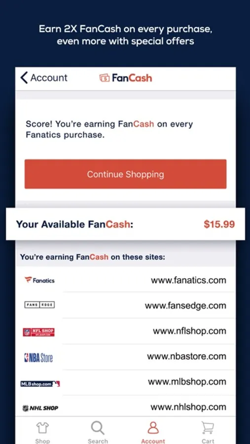 Fan Cash™ will be automatically applied toward any eligible item you buy