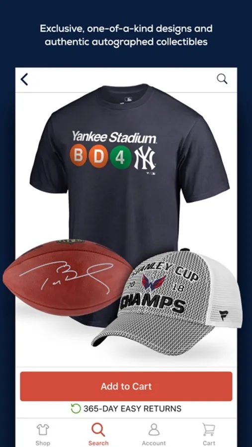 Enjoy 24/7 access to the latest and greatest sports apparel. Personalize the app with your favorite teams or just browse for fun- there’s no store big enough to hold our selection.