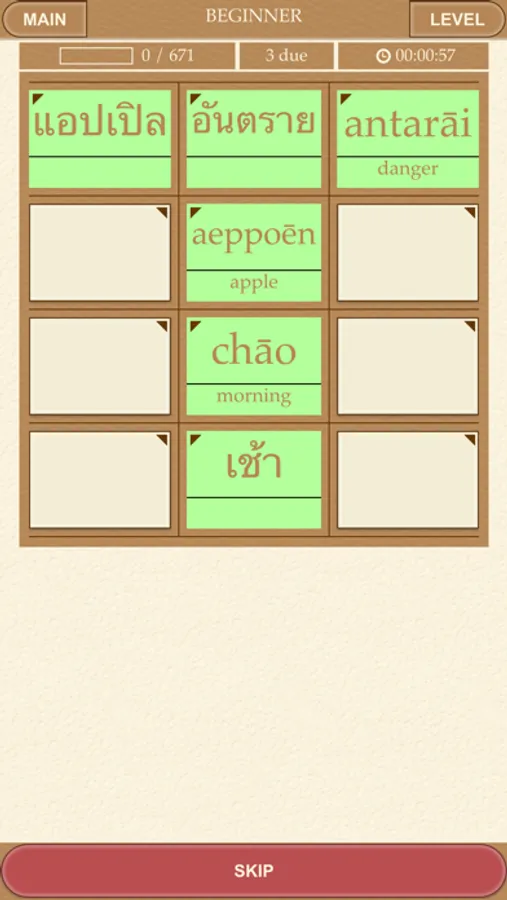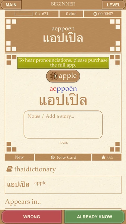 Scribe: Thai also includes numerous games using the same study deck, so no matter what game you play, your study picks up where you left off. You can study Thai YOUR way. And your dreams of speaking Thailand can come real.