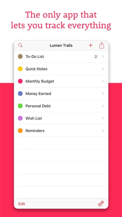 Lumen Trails lets you take notes, make lists and keep track of other things in your life such as time, workouts, expenses, calories, food, weight, sleep or anything else you can think of, even where you've parked your car. Thousands of people use it every day, and they love it because it truly makes a difference in their lives.
