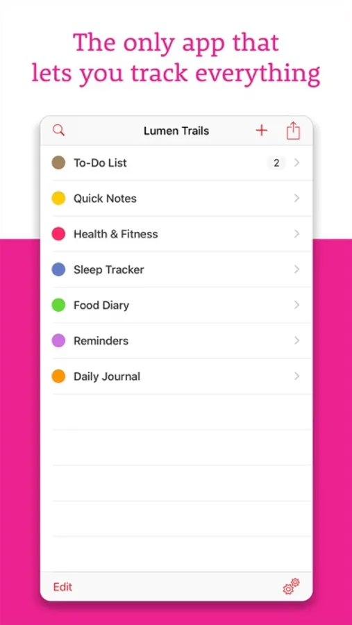 Lumen Trails lets you take notes, make lists and keep track of other things in your life such as time, workouts, expenses, calories, food, weight, sleep or anything else you can think of, even where you've parked your car. Thousands of people use it every day, and they love it because it truly makes a difference in their lives.