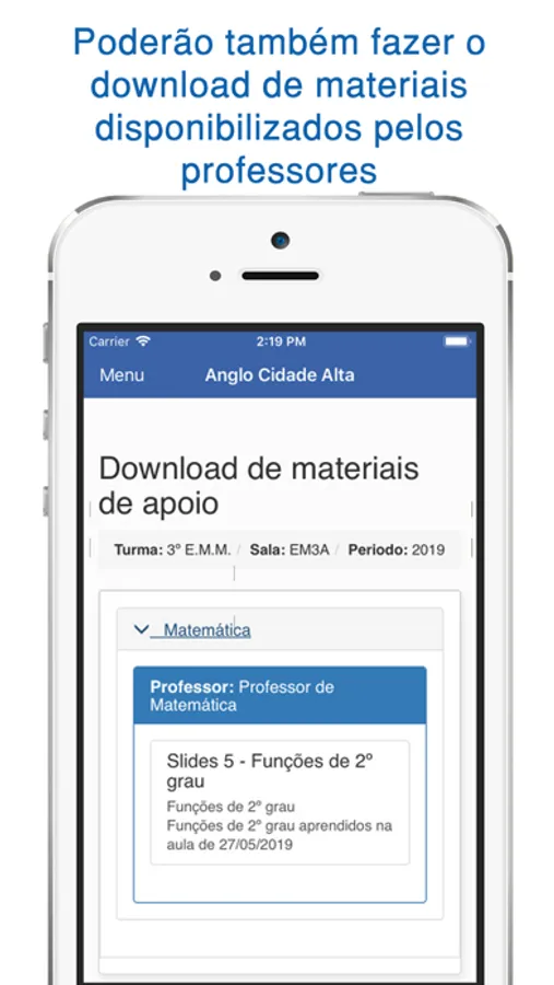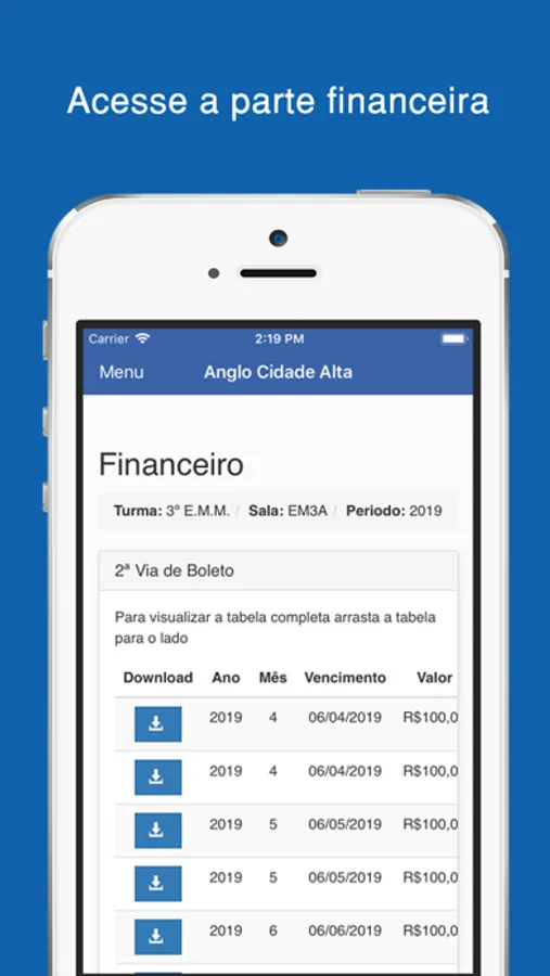 Os alunos poderão acessar seu boletim de notas e faltas, visualizar a 2ª via de boletos bancários, além de receber mensagens e notificações de notícias enviadas pelo colégio e fazer o download de materiais enviados por seus professores.