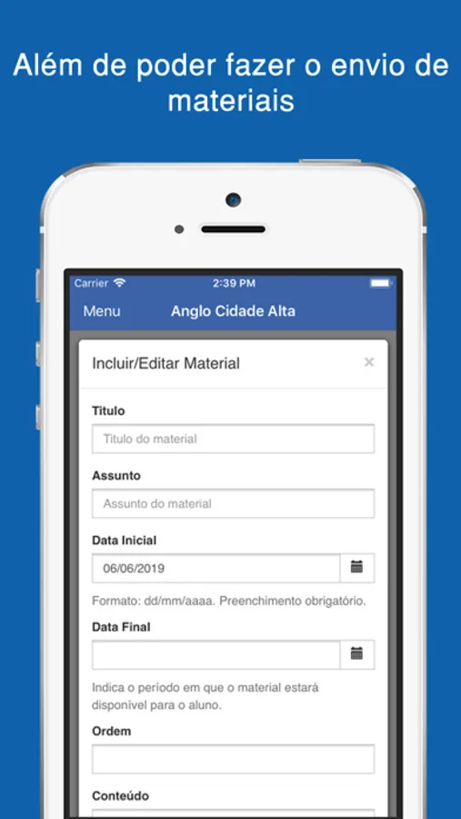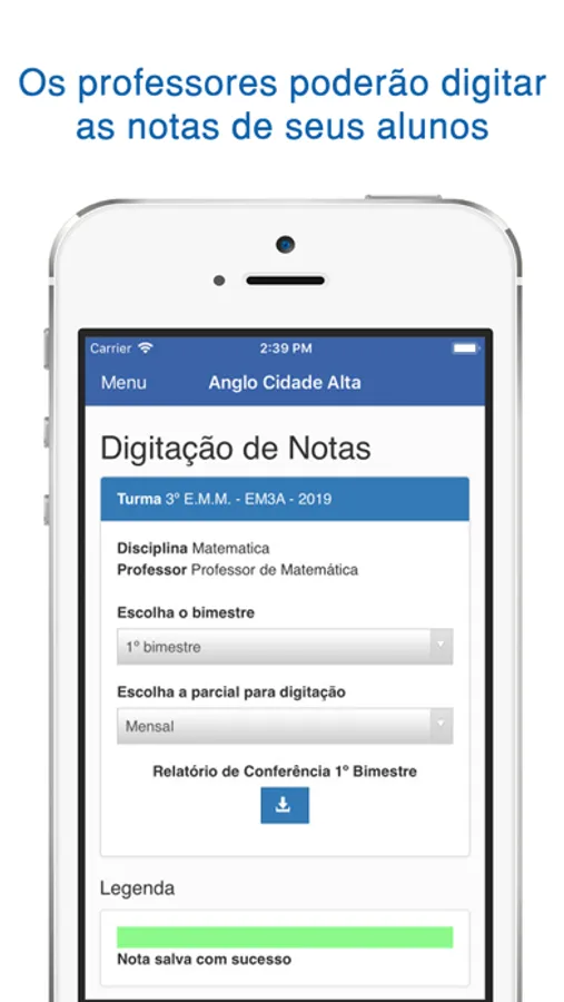 Os professores poderão digitar as notas de seus alunos e enviar materiais de apoio.