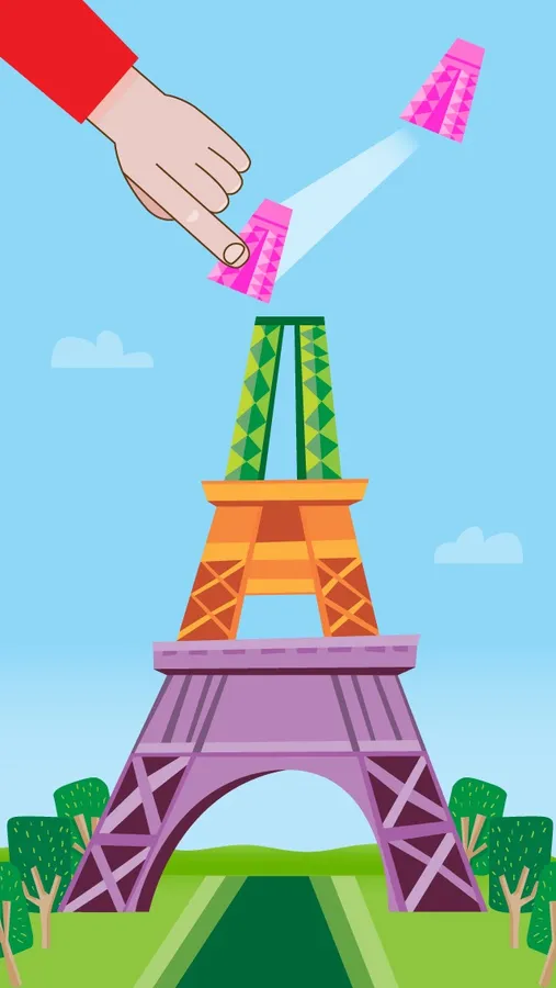 Game towers: Snowman,Ship, Wedding Cake, Cubes Tower, Car, The "Eiffel Tower"
