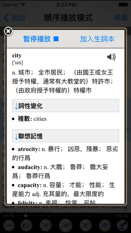 字典词库较大,请在WIFI环境下下载,之后可离线使用。内置疯狂英语,走遍美国等经典教材,免费提供的内容可体验全部功能,部分内容可在付费后使用。
