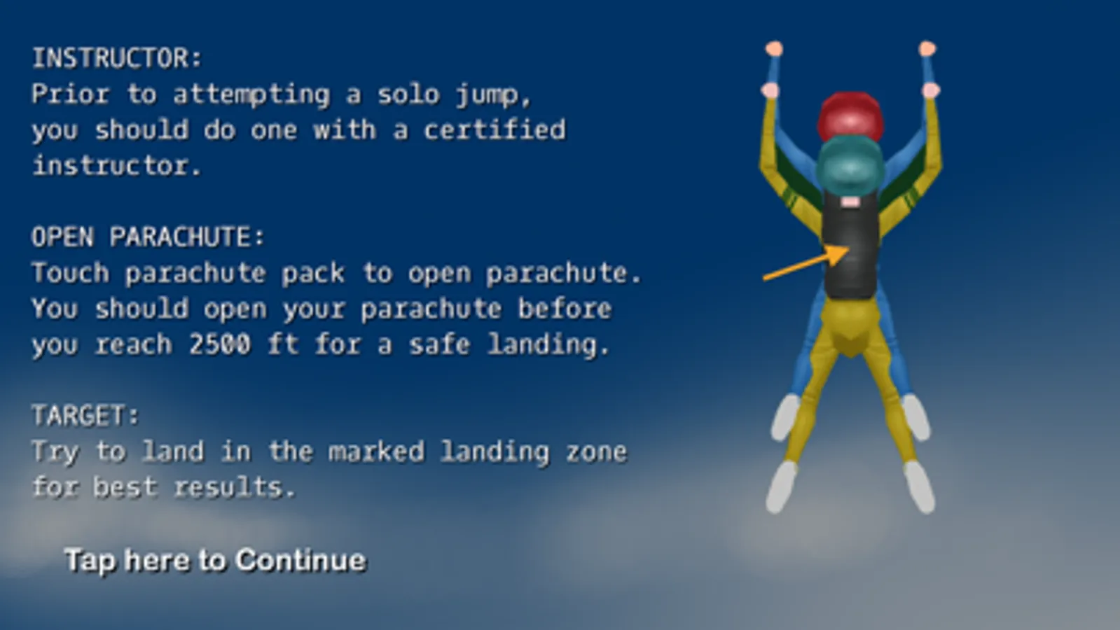 Lean your iPhone to adjust your movement during free fall. Touch the parachute pack to deploy your parachute. Lean your iPhone to control your descent as you try to land as close as possible to the target landing zone.