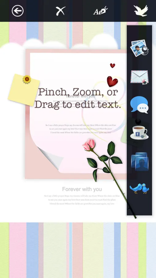Greeting Box is the best design app for sending free greeting cards to your loved ones. Add the test you want, with the ability to rotate them.
