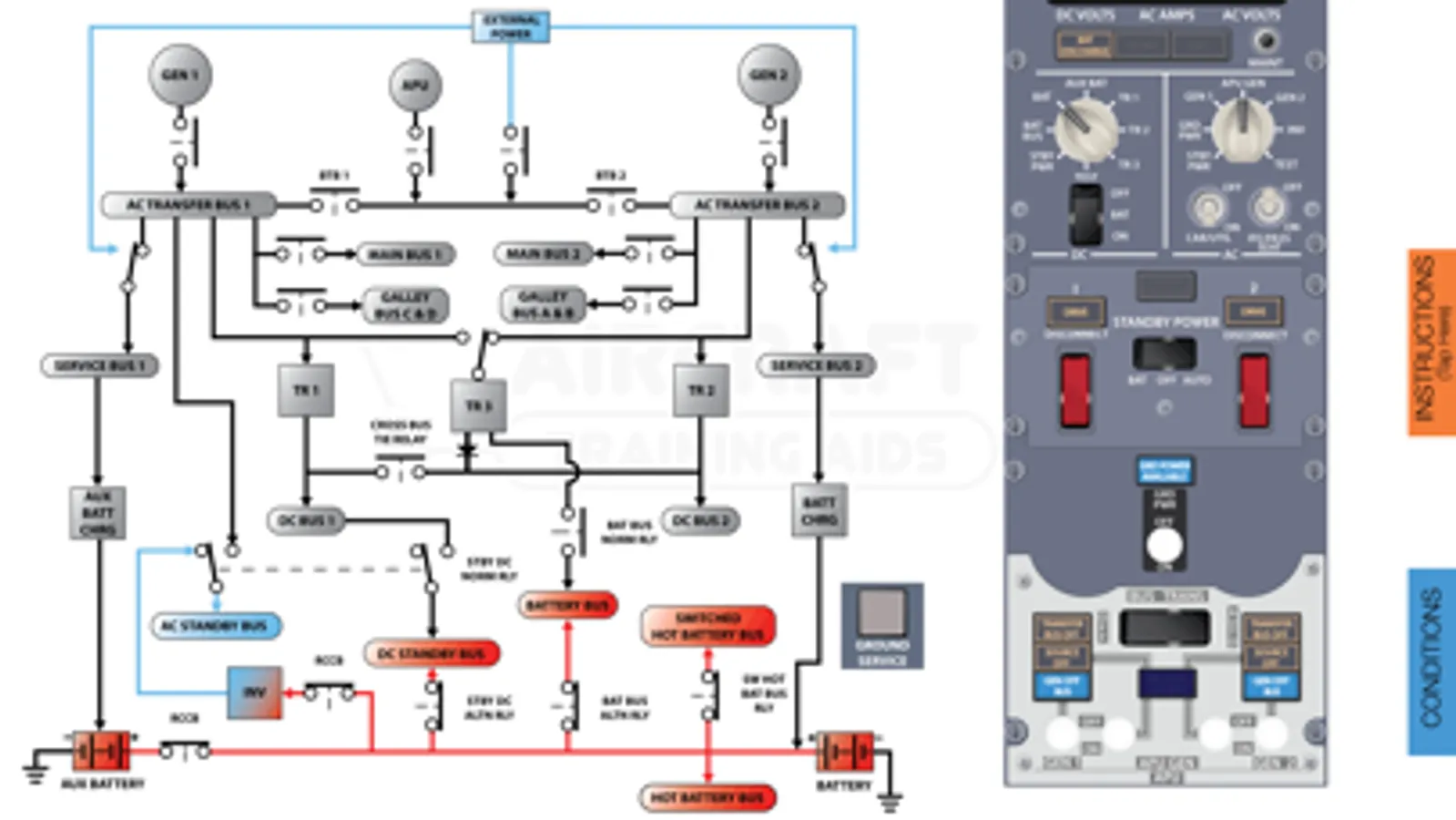 The Boeing 737 NG Interactive Electrical Diagram is a completely interactive training aid. The interactive diagram allows the user to learn the electrical system by manipulating switches and visualize the cause and effect.