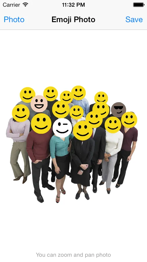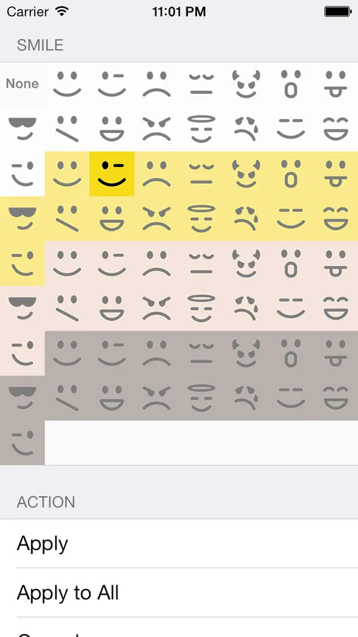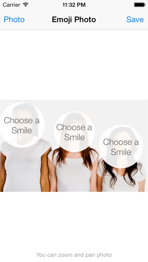 Note: After select a photo, faces are automatically detected and a circle surround each face lets you choose a smile from gallery.