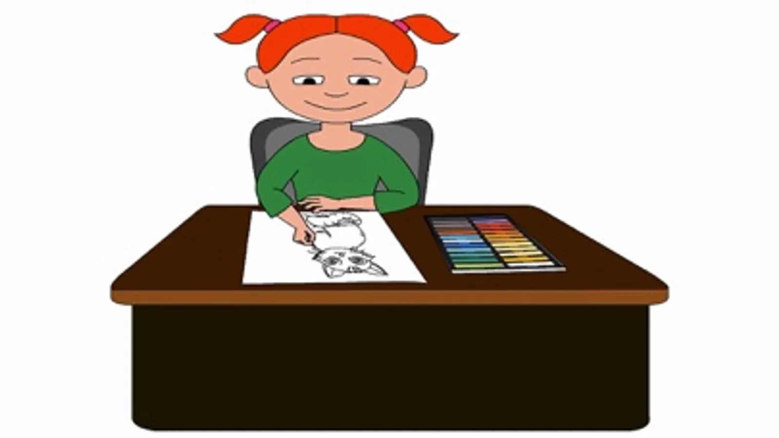 5) The animation that shows the sentence that was created (i.e., “The girl is eating a carrot”) is now shown, typically with a sound effect. If the verb is present tense, (which is the default) it snaps back and loops continually, without sound.