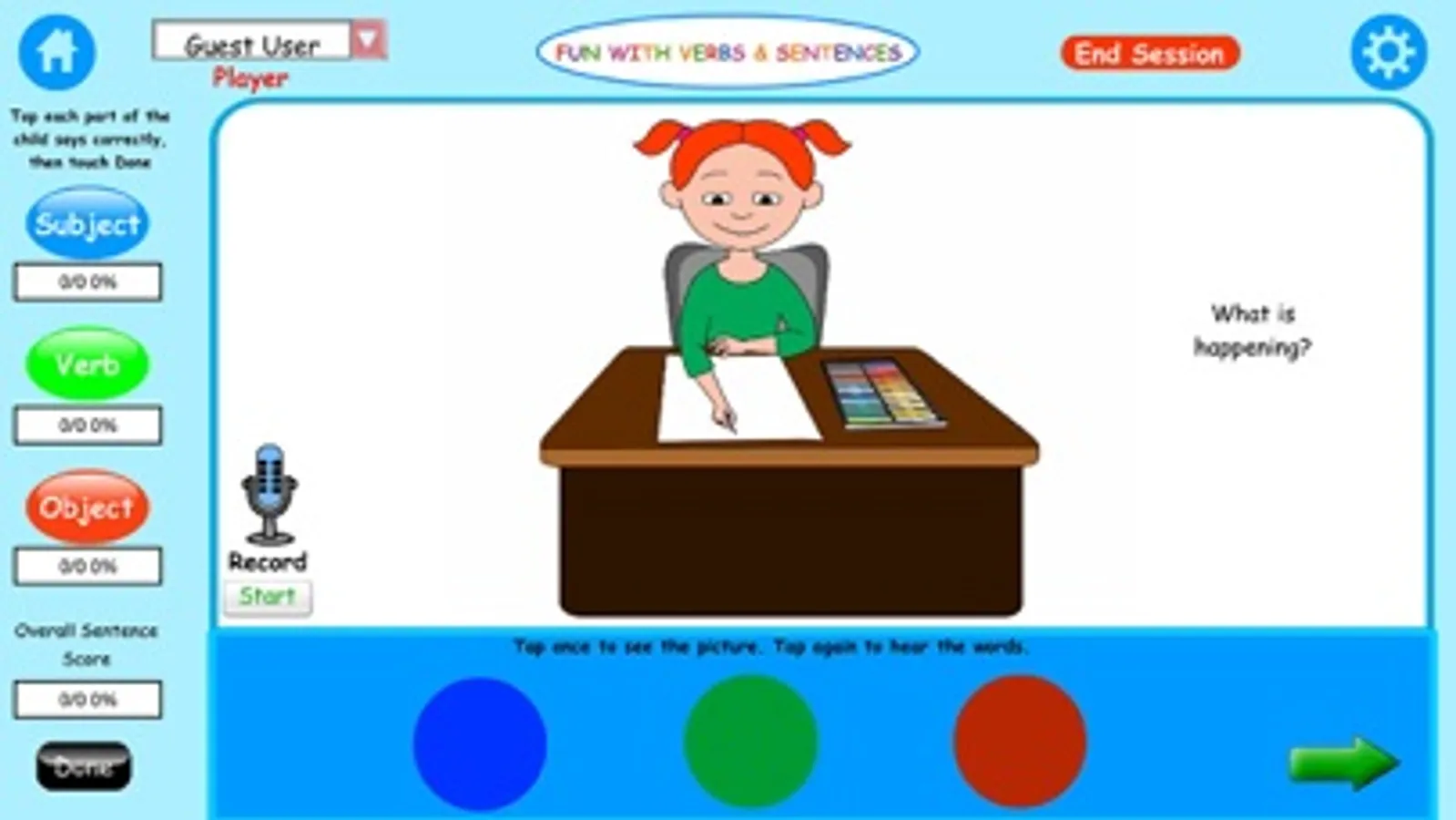Here’s how to play the main activity, Build a Sentence: