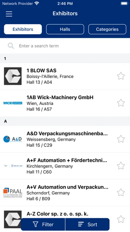 Mark specific exhibitors and products as favorites and build your own personal list of things to remember, making the interpack app into your digital companion as you make your way around the fair. Sync your favorites also with your saved portal settings. All needed information will be transferred from your desktop pc to your Smartphone.
