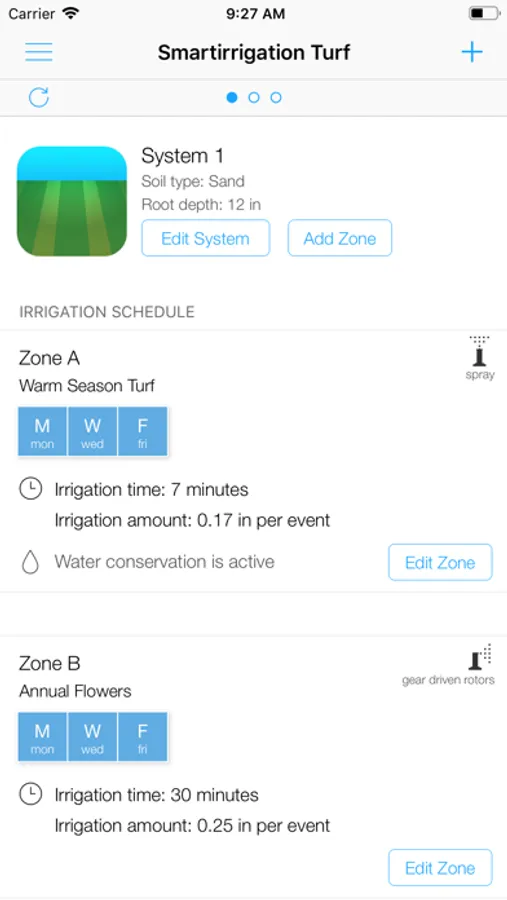 Users can register irrigation systems in the app and receive notifications regarding irrigation schedules changes due to differences in the irrigation demand for the next few days.