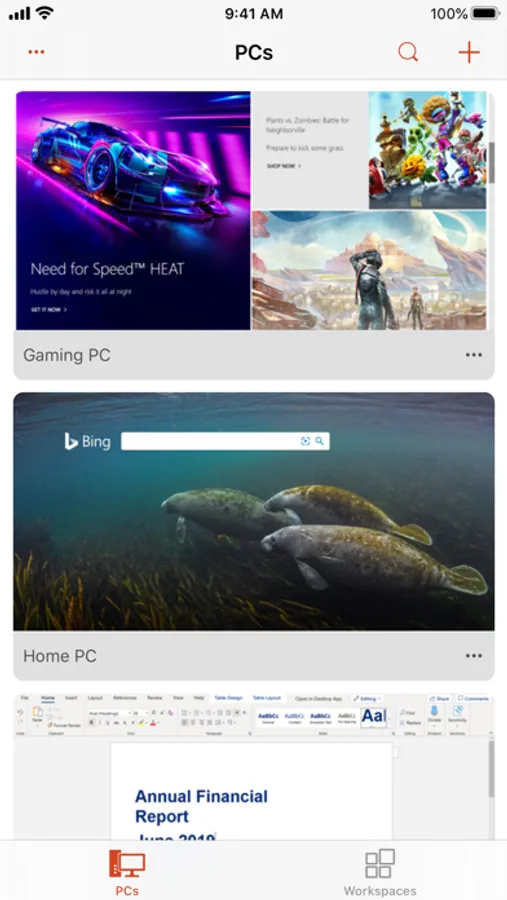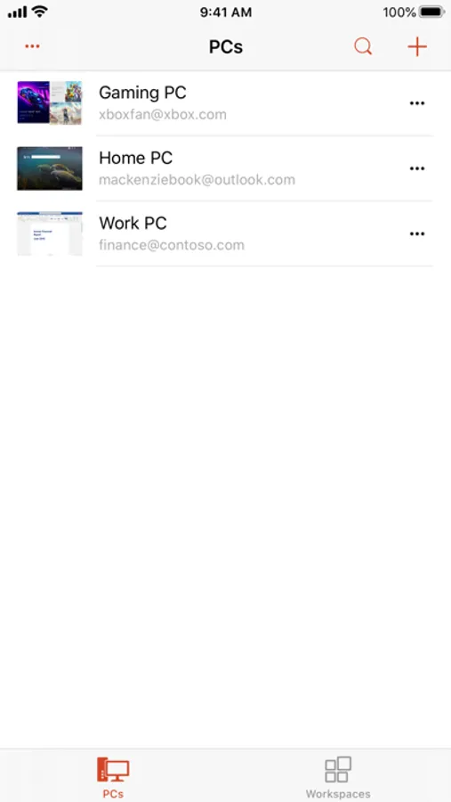 • Access remote PCs running Windows Professional or Enterprise and Windows Server.