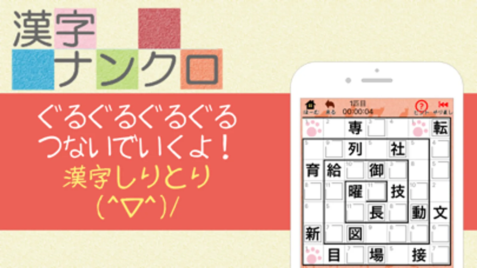 どのパズルも、盤面のマス目を漢字で埋めていく定番の漢字パズルゲームですが、少しずつルールが違うので、いろんな角度からの頭の体操になります。
