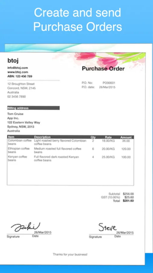 • Manually edit subtitles (e.g. Billing address → Bill to, Signature → Approved by)