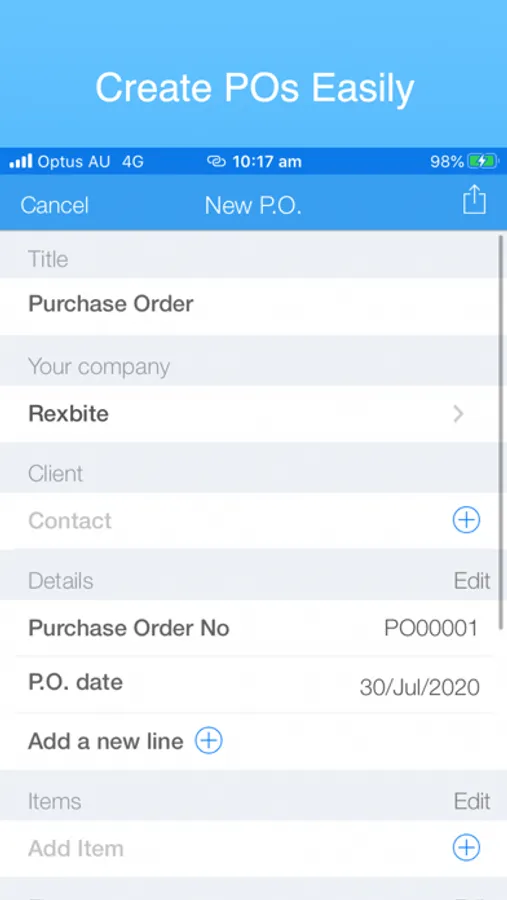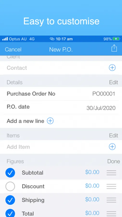 • Delete items (e.g. POs, products, customers) by swiping to left