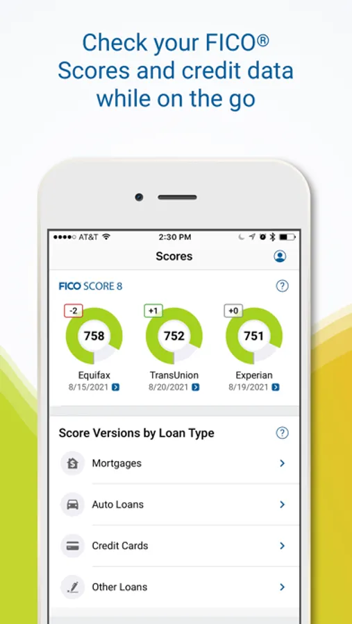 • FICO® Scores – Check your FICO Scores while on the go, including versions used in mortgage, auto and credit card lending