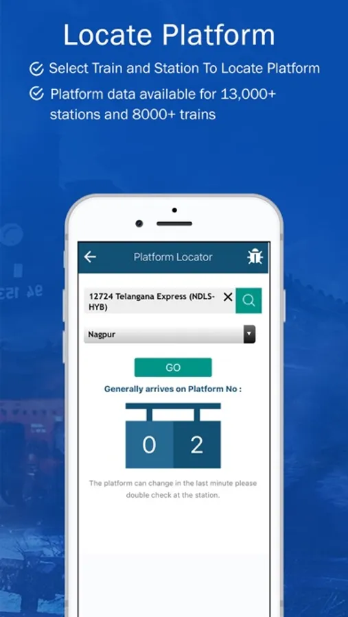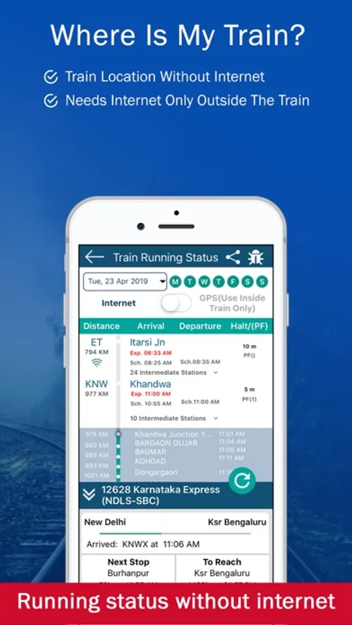 Get Live Status of Train anytime, anywhere. This works on GPS and does not require the Internet within our app. Please try it from the "Train Running Status" feature of our app.