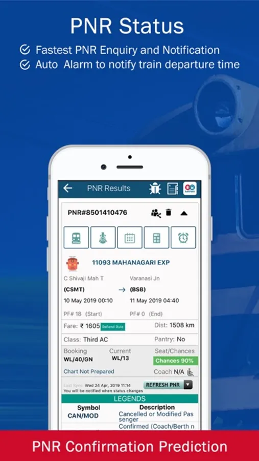We not only provide PNR status check for railway tickets, train seat availability, train running live status, NTES Rail Enquiry System but also information on Fares, Platforms, Coaches, Meal Charges, Offline Train Routes, Cancelled Trains, Seat Map, Alarm and much more.