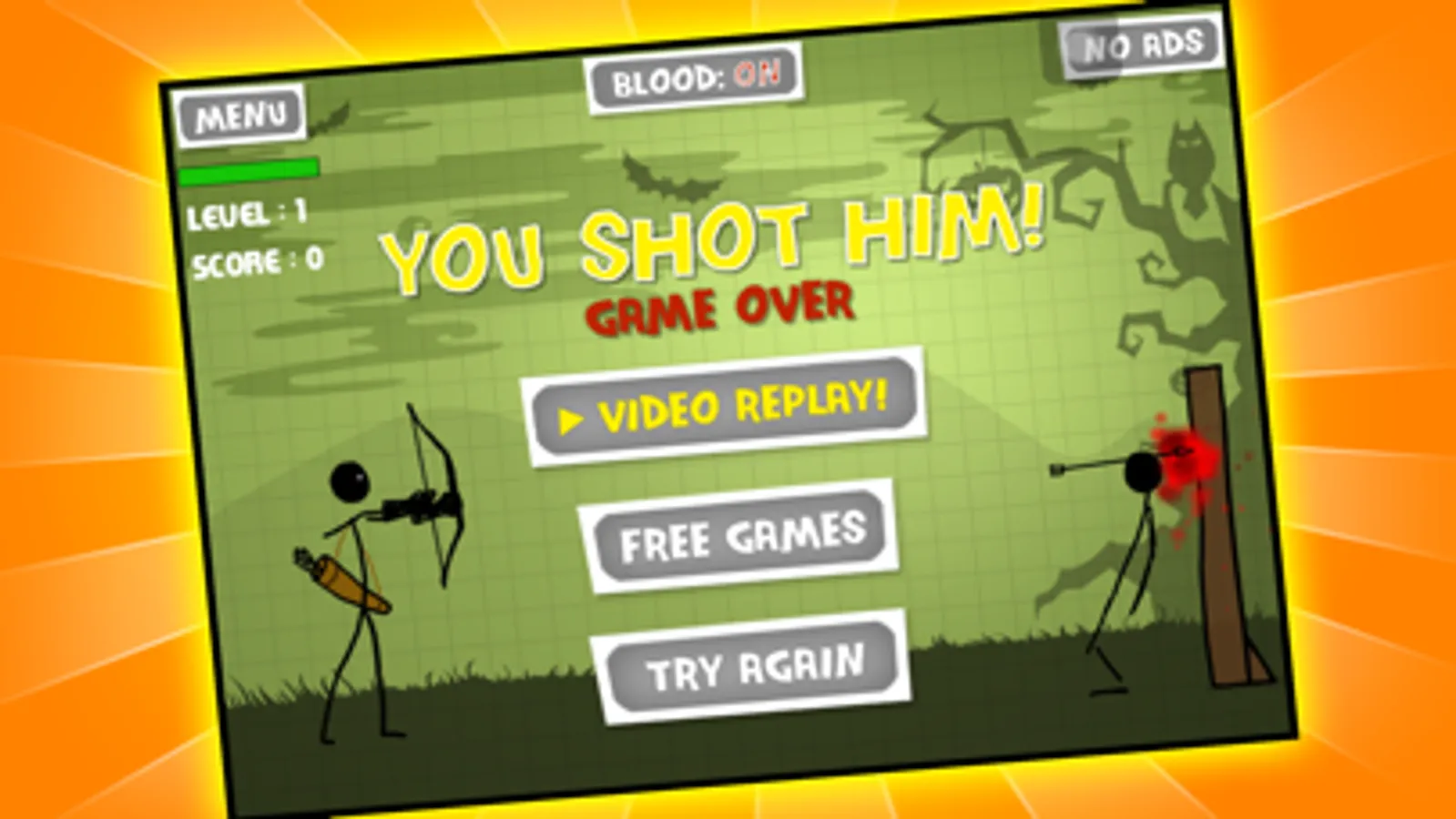 How good is your aim? Can you shoot the pumpkin off of stickman’s head? WATCH YOUR SHOT! IF YOU AIM TOO LOW STICKMAN IS GONE!
