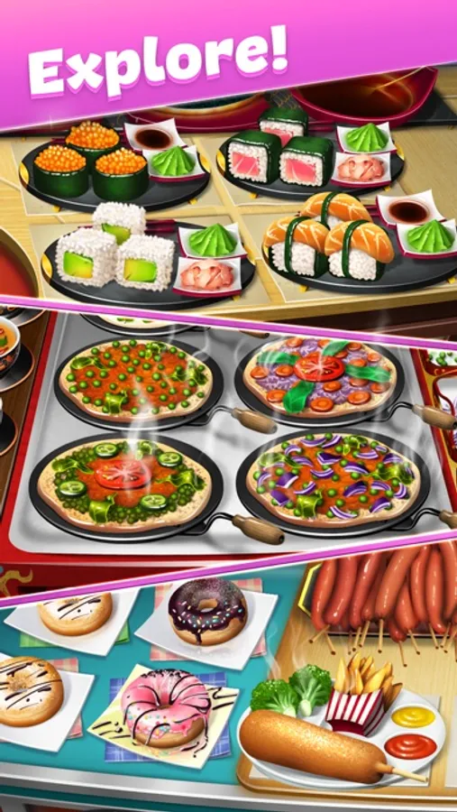 With a wide choice of unique locations and restaurants, from Desserts and Fast Food to Indian and Chinese cuisines, you will be able to practice your skills in a variety of settings and cooking techniques. Use hundreds of delicious ingredients to cook the best quality dishes. Try all the possible kitchen appliances, from coffee makers and rice cookers to pizza ovens and popcorn makers. Decorate your restaurants to attract more clients. Make your own freebies, such as cookies or cupcakes, to make your customers’ experience more personal and memorable – just like in real life! Upgrade your kitchen and produce an even greater variety of dishes.