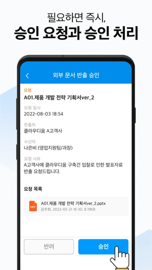 - 안전하고 간편하게 외부반출 요청/승인