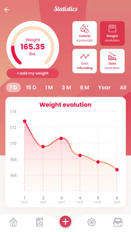 - If you go over budget, you start gaining weight. The equivalent amount of weight gained is displayed on your app in real time, based on how many extra Calories you have consumed.