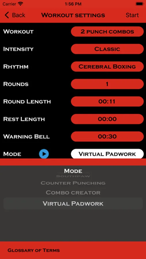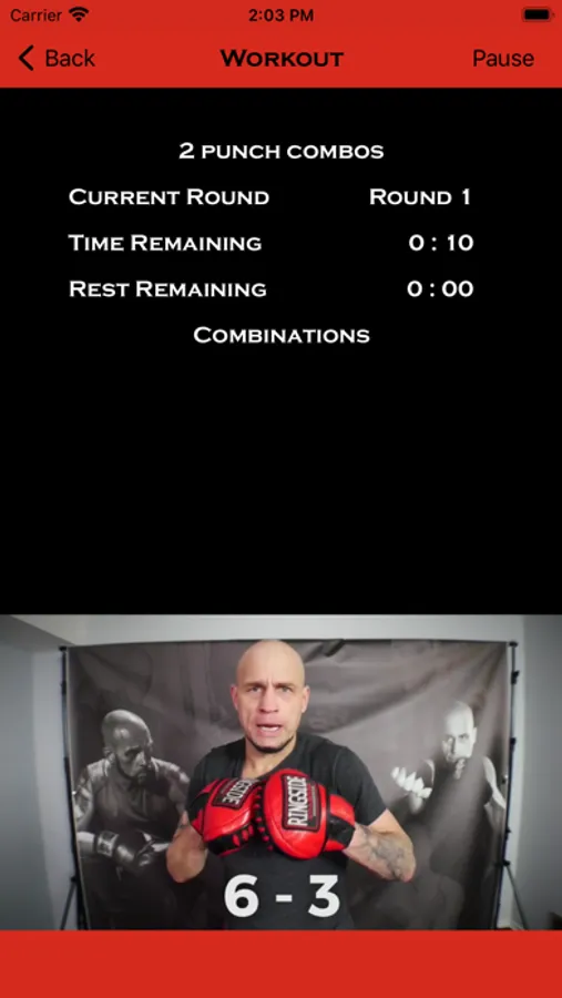 You can also utilize the Combo Creator which allows you to create your own combos in multiple combat arts. Or use the Virtual Padwork mode to work with me on 27 different combos.