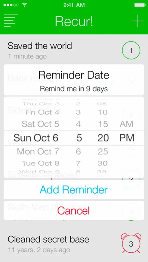 And as an extra tool for your utility belt, Recur comes with powerful repeating reminders to guarantee you’ll never forget the mundane stuff, like washing your cape or walking your invisible dog.