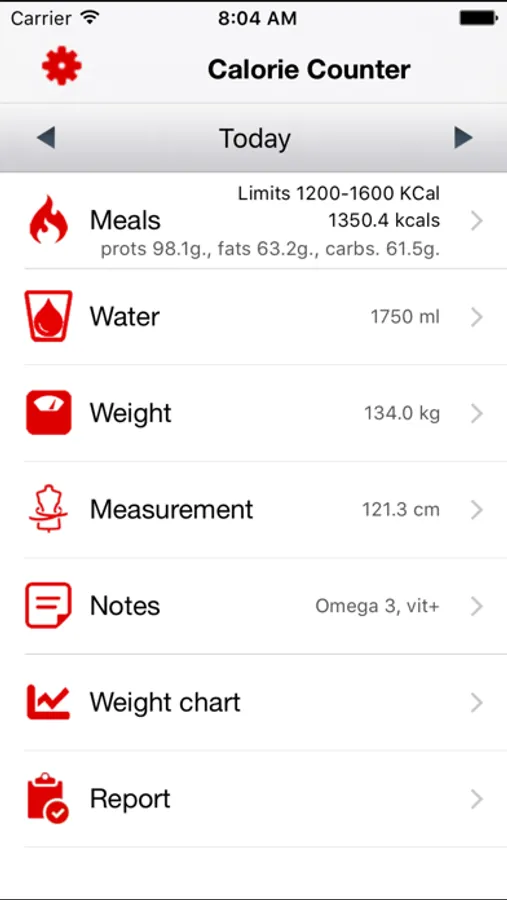 The application have an ability to save following parameters into into iOS Health application: nutrition energy/prots/fats/carbs, body weight, water consumed, waist circumference.