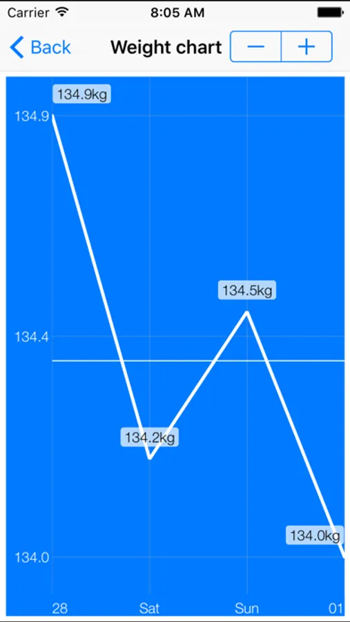 The application tracks calories and measurements daily, have an ability to set/change meals time, calculates average measurement value (breast, waist, hips).
