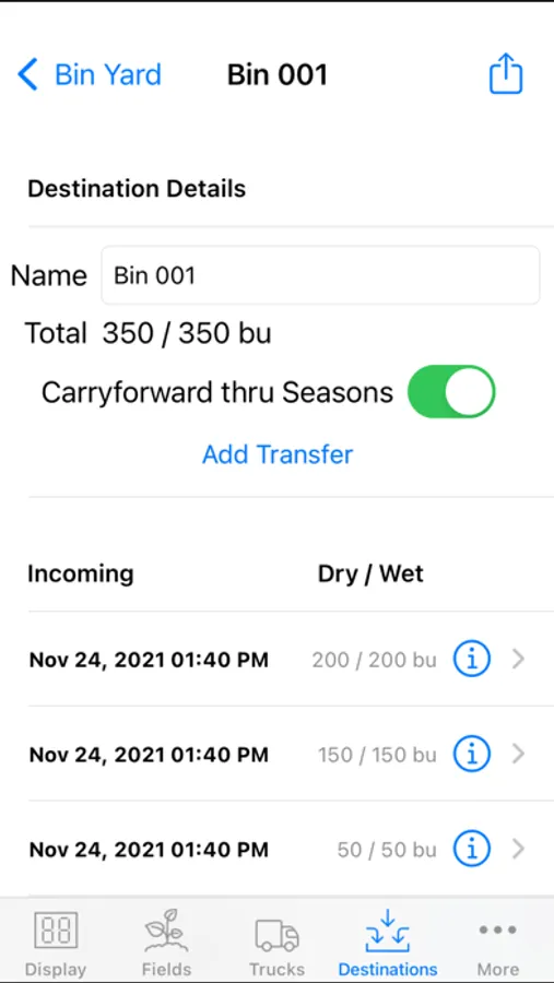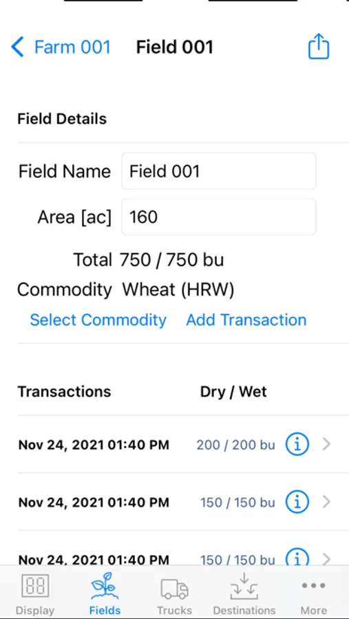 * Record unload transactions automatically or manually to save the date, time, wet/dry weight, and GPS coordinates for each load